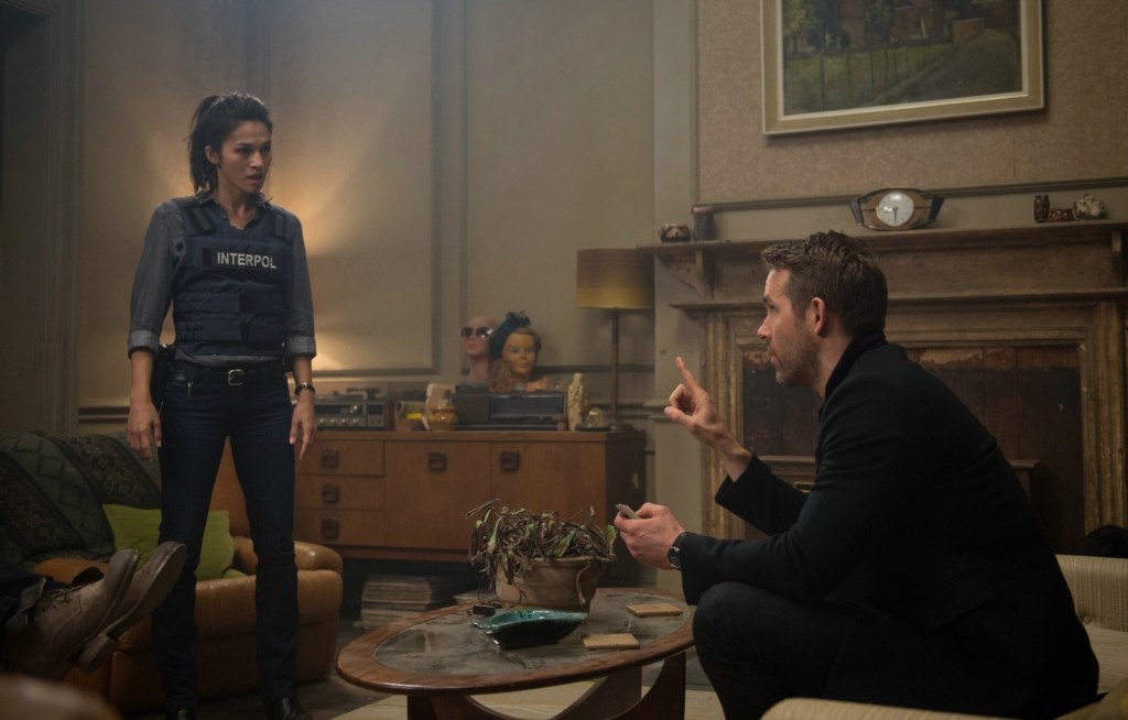Elodie Yung’s Amelia Roussel is working to figure out who in Interpol betrayed her and her people, clearly intent on killing Darius Kincaid and willingly using her team as target practice. Her bosses, Renata Casoria (Tine Joustra) and Jean Foucher (Joaquim de Almeida) both seem to be playing speed chess about the situation – trying to stay one step ahead of whoever it is that’s blown up their operation. It’s clear, though, that one of them is the mole – and that is who Roussel tries to identify throughout the film while ensuring that Michael and Darius actually do make it to The Hague.