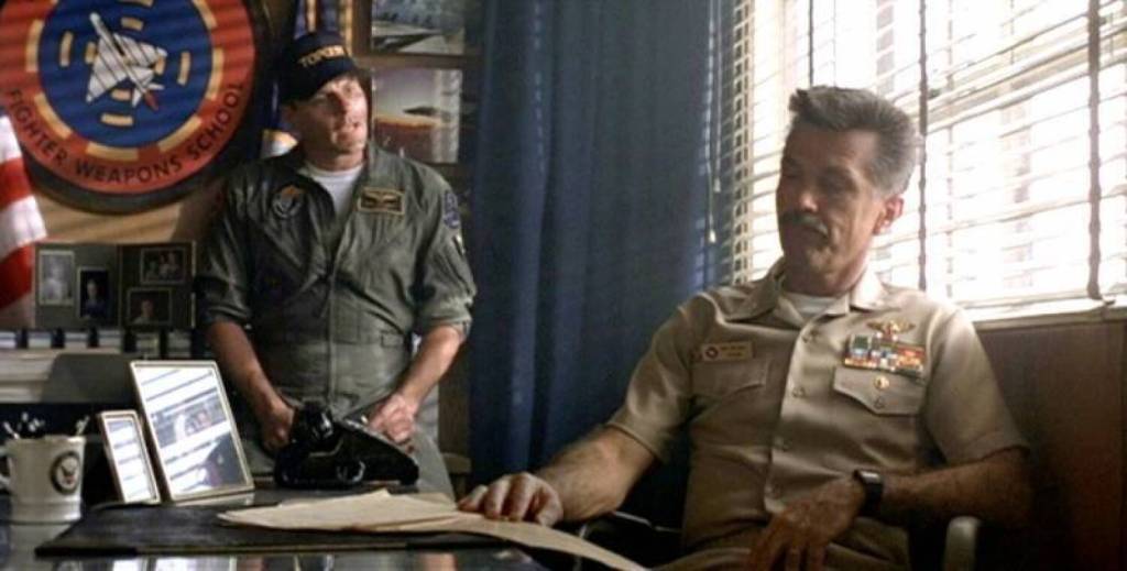 Around the halfway mark of the film, after the relationships between the characters have been formed and the training is nearing its end, tragedy strikes when Iceman causes Maverick and Goose’s aircraft to be damaged and turn into an unrecoverable fall. During their ejection, Goose’s head is slammed into the steering controls, and his neck snaps before his parachute is ever deployed, giving Maverick reason to doubt himself. I point out Iceman specifically because, while Maverick is the one hauled before a hearing, the fault so obviously lies with Iceman that it’s honestly shocking that he wasn’t ever questioned for how his recklessness caused Goose’s death. Therein lies the subtlety, though, as Iceman can clearly be seen in how he acts as feeling responsible; though his apology barely covers any ground, the sequel makes it clear that that guilt has compelled him to protect Maverick throughout their careers in the Navy.