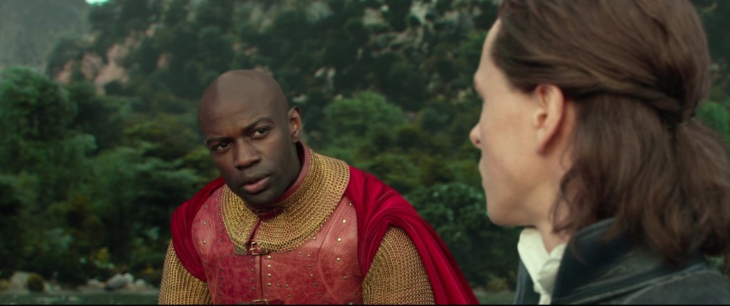 Prince Phillip is not off gallantly on his own this time – David Gyasi plays Percival, the captain of the guard, who also attempts to act as a voice of reason to the Prince. Phillip, having spent years getting to know the people of the Moors due to his love for Aurora, is quick to chasten Percival for his callous remarks about them. This attitude is not unique amongst the people of Ulstead, and it is almost entirely centered on how the Queen has worked to ensure it. For Ingrith, she has Gerda (whose name is not mentioned in the film – she is played by Jenn Murray), she is the loyal aide and gleefully participates in all of Ingrith’s horrid plans. These two characters, Percival and Gerda, act as mirrors of who Phillip and Ingrith are, with the former’s appreciation of the Moors growing more accepting while Gerda’s grows crueler.