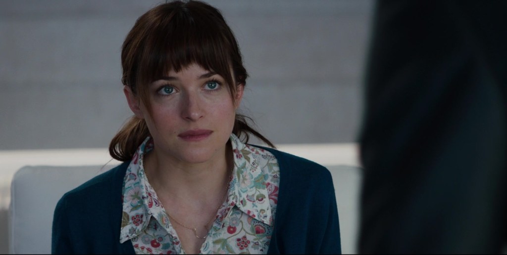 Partly why most of the supporting cast takes a massive back seat to the relationship between the two leads, despite it being about their relationship, is because the story is told entirely from Anastasia’s perspective. In the book, we only know what she knows or what she infers. The events that occur on screen are from her perspective as well – though, much like Stephanie Meyer did with Edward Cullen, E.L. James also produced companion novels that focus on Christian’s perspective. In fact, she gave us three, one for each mainline book. Meyer only provided one. When it comes to first-person perspective, the information about the rest of the world is difficult to provide because unless the viewpoint character is present, the information can only be provided secondhand unless something is contrived to allow the viewpoint character to come into possession of the information. This does work for dramatic effect, though. The information that Anastasia is not given allows her to truly be confused when it comes to her attention – such as the true reason why Christian prefers to surround himself with blondes rather than brunettes.