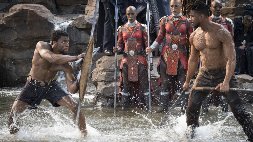 Ryan Coogler worked closely with each department, ensuring that the cosmetic elements of the world of Wakanda, while fictional, were accurate and consistent. Black Panther invites us to explore a world where African culture was not subsumed by centuries of exploitation. At the same time, it ties into the real world – with the British Museum, called the Museum of Great Britain here, given a spotlight. As many people have become aware, especially in recent years, cultural and historical pieces are hoarded in museums with nothing to do with that culture, and Britain is chief among them. When Killmonger is first introduced in the modern day, it is at this museum, explaining how several artifacts on display were stolen across Africa. Killmonger is more than happy to explain that one of the artifacts they have may have been found in one country, but it is actually from Wakanda – showing that he is more adept at his country’s history than a so-called expert in the field.