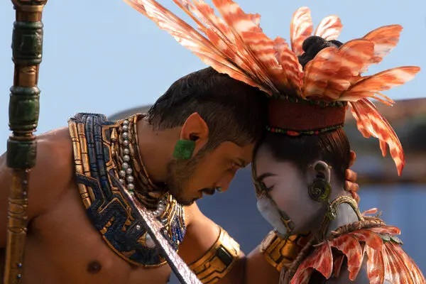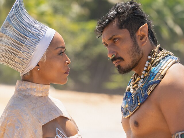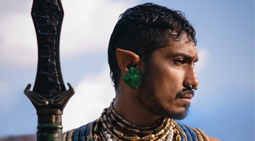 On the Wakandan side, with Aneka (Michaela Coel), a newly introduced member of the Dora Milaje, who is in a romantic relationship with Ayo (Florence Kasumba), who has graced our screens since the introduction of T’Challa all the way back in Captain America: Civil War. While Okoye is more interested in traditional tactics and weapons of the sacred all-female protective formation of the King or Queen of Wakanda, Aneka proves to be a bit more open to exploring new and innovative technologies – despite Ayo’s warnings and chastisements about irking Okoye in the process. Okoye is on a journey, like Shuri, as she attempts to atone for her earlier decision to serve Killmonger when he usurped the throne. This, and her conflict with the Talokanians partway through the film, force Okoye to reexamine her worldview – especially as the consequences of all their choices lead to the unthinkable happening.