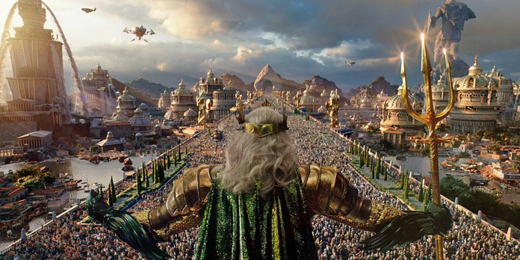 In Aquaman, we are given a beautiful world to explore – with its true depth not touched on just yet. Atlantis is comprised of seven Kingdoms: Atlantis proper, Xebel, the Fishermen, the Brine, the Trench, the Deserters, and the Lost Kingdom – itself the central plot point for the sequel. Some of these locales show up, and the beautiful cinematography gives us amazing visuals to feast upon. From its rich historical past, to its present sunken glory, Atlantis is presented as a mysterious wonder akin to its mythological basis.