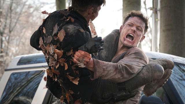 Still, Tom is determined to hang onto his relationship with Sophie, even as he questions whether or not he loves her. He speaks candidly with his family’s butler, Callum (Richard McCabe), regarding his grandmother and grandfather’s relationship. Callum gently explains that Tom’s grandmother loved her husband “in her own way,” making it all the more straightforward that Tom inherited his psychopathy. He also gets gentle ribbing from his best friend and coworker, Sgt. Declan Smith (Tom Hopper). The two are close enough that Declan occasionally sleeps on Tom’s couch, and Tom goes out of his way to save Declan from a grenade early into the film’s second act. Declan is also the person that Tom trusts the most to pass critical information to throughout the film, especially as he is benched by his superiors for executing somebody about to blow him and Declan up.