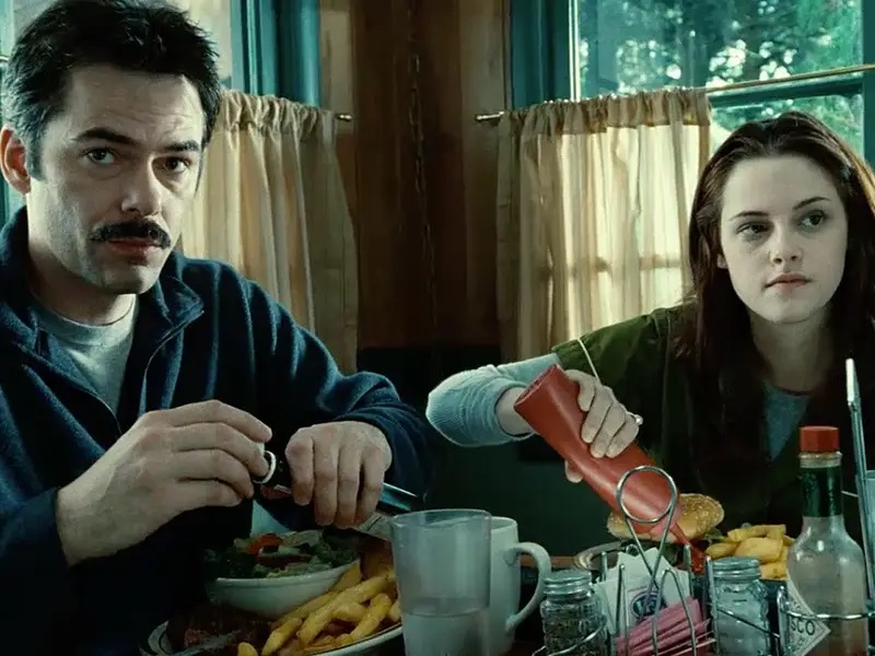 The film begins with a quote and cinematic imagery that thematically ties into the story that we are about to see as a figure that moves too quickly for our eyes to discern hunts a deer in the woods. Bella is in Arizona with her mother, Renée Dwyer (Sarah Clarke), and her new husband Phil (Matt Bushell here, but replaced in later installments with Ty Olsson), a scatterbrained but well-meaning woman and a minor league baseball player respectively. Having been forced to mature faster to care for her mother, Bella decides to head to Forks, Washington, and live with her father, Charlie Swan (Billy Burke), the police chief for Forks. This wasn’t a decision she made lately. While her demeanor makes it harder to read, she is clearly irked about uprooting her entire life. Her relationship with her father is frayed, but with Phil acting as a more stabilizing force in Renée’s life, Bella felt she could detach and find her own way, despite any reservations she might have. Considering how often some children have to parent their parents, it isn’t precisely unbelievable.