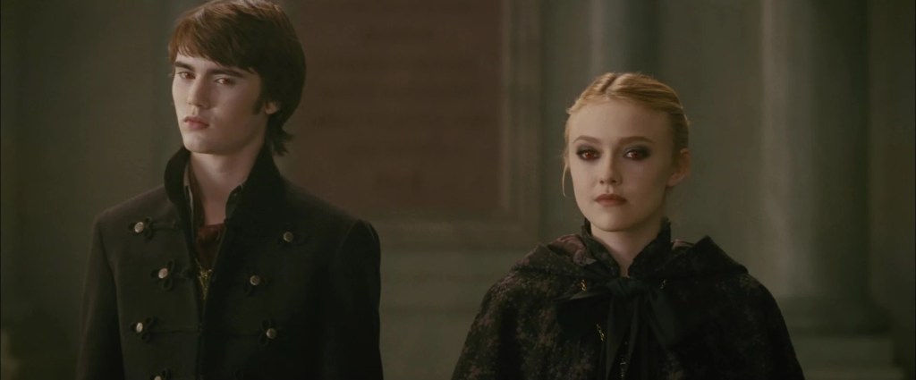 We merely get a taste of Jane and Alec, with Dakota Fanning’s Jane receiving more characterization through her “active” role versus her brothers’ more passive performance here. It’s clear why the two, and Felix and Demetri, took center stage in a major subplot in Eclipse.