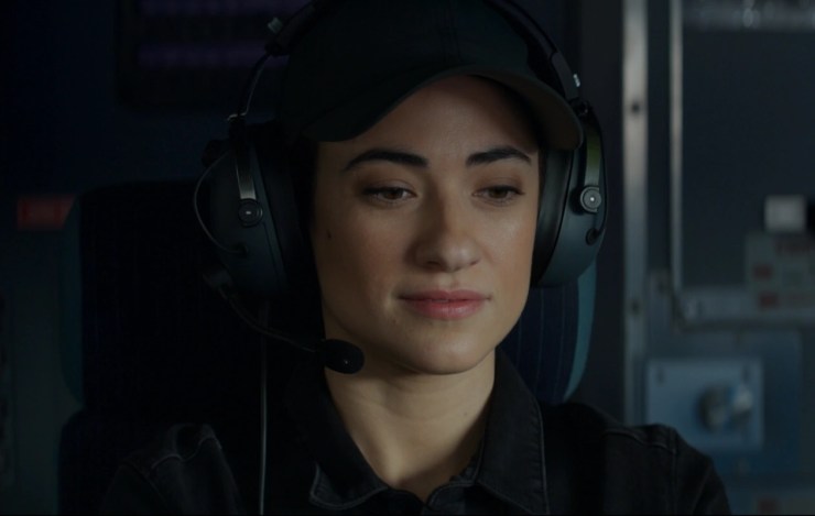 For the new characters, Mana One has some new staff – Jess (Skyler Samuels), Rigas (Melissanthi Mahut), Curtis (Whoopie Van Raam), Sal (Kiran Sonia Sawar), and Lance (Felix Mayr). Sal, Curtis, and Lance are all divers for Mana One, while Rigas is a security officer and Jess is an analyst. The latter two are the more important ones, with both being presented as having worked with the team for a long time – and the implication being that Rigas was involved in the first film’s events. Rigas makes a bit more sense when one considers a small note – the role was probably intended for Ruby Rose, banking on her work from Batwoman and John Wick: Chapter 2, which showcased her chops as an action star in between The Meg and Meg 2. On the other hand, Jess is far more insidious of a character.