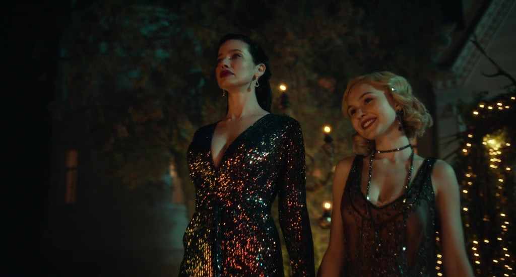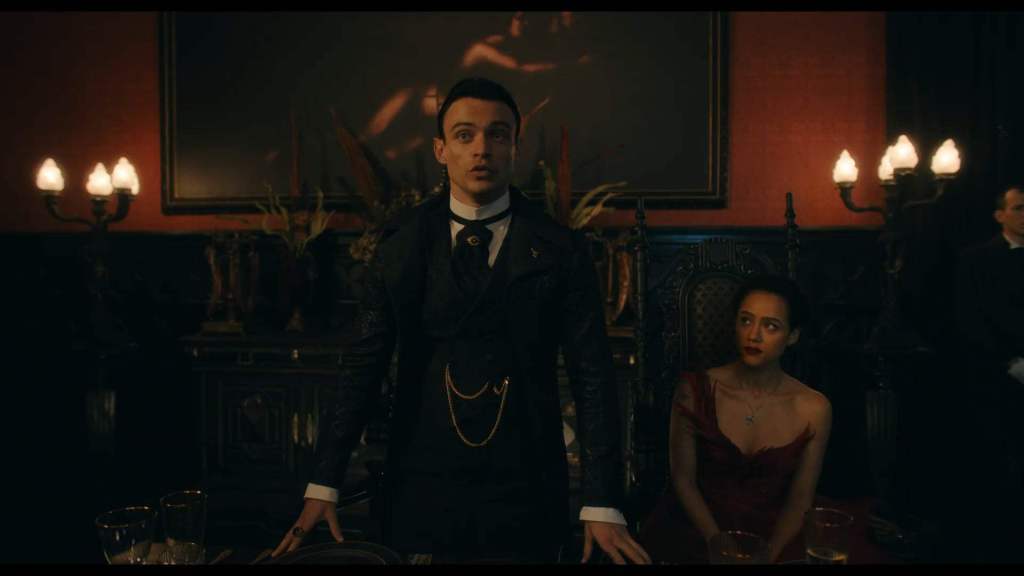 With the story focusing on De Ville’s (Doherty) efforts to seduce Evie to his side and the undercurrent of mystery as Evie finds her environment becoming stranger and a bit more dangerous, little time is devoted to delving into the characters of Viktoria or Lucy beyond the surface, but just enough is provided. Boden and Corneliussen bring their differing personalities to life. They highlight how Lucy is eager to have Evie join their growing family, while Viktoria views Evie as competition at best and a threat at worst. With an agreement between three major families to each provide a bride to De Ville, it becomes harder to understand why Viktoria’s entire role is tied to how much she despises Evie – much of which stems from the fact that Evie is black. Until it becomes clear that they’re vampires, Viktoria and Mr. Field’s dislike can be interpreted as sheer racism and classism despite Mr. Field being ‘the help.’ By sabotaging, or as it becomes clear partway through the film, trying to outright murder Evie, Viktoria technically only hurts her standing in the long run.