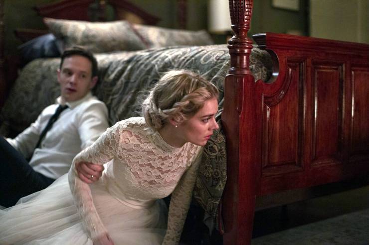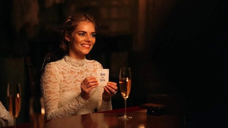 The story opens with a prologue set sometime in the family’s history, never specifying a true date, on the last instance where the family had to play a specific game: Hide and Seek. We are treated to children running around playing the game before a wounded man, Charles (Andrew Anthony), appears, begging for help. Instead, Daniel calls out for the family, resulting in Charles being shot through with a speargun and dragged away. The main story picks up thirty years on the day of another wedding, as Alex (Mark O’Brien), the younger brother of Daniel (Adam Brody) and the estranged son of the Le Domas family, brings his bride Grace (Samara Weaving) into his family. Though he does not believe in the family’s curse or blessings, he still chooses to marry Grace in the center of his family’s empire. It’s not until the wedding night that he even shares the twisted truth, however disbelieving he might have been before about the consequences, Alex still participates.