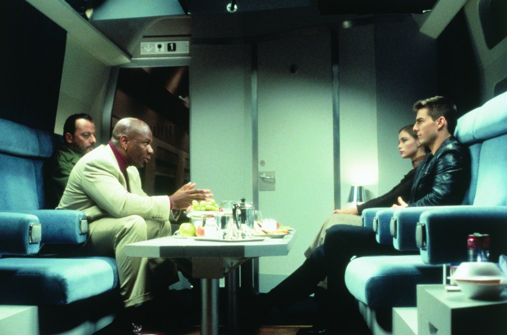 Ethan, disavowed by the IMF and desperate to clear his name, is forced to go on the run for much of the film. We are introduced to him as a man deeply embedded in the IMF, but Ethan is forced to execute his plans for much of the movie without the group’s support. This is where the lead supporting cast in the film comes in, with Luther Stickell (Ving Rhames) and Franz Krieger (Jean Reno), a skilled computer hacker and pilot respectively, being his main support. While Stickell would go on to play a prominent role in each successive film, barring Ghost Protocol, where he had a cameo at the end, Krieger is soon revealed to be a traitor hiding in Ethan’s team, drawing on Mission: Impossible’s greatest strength: who can you trust in a world of spies who lie?
