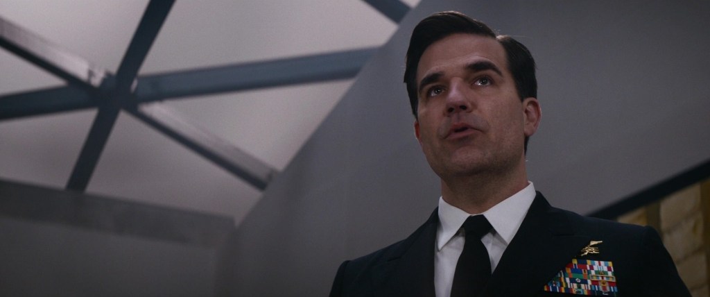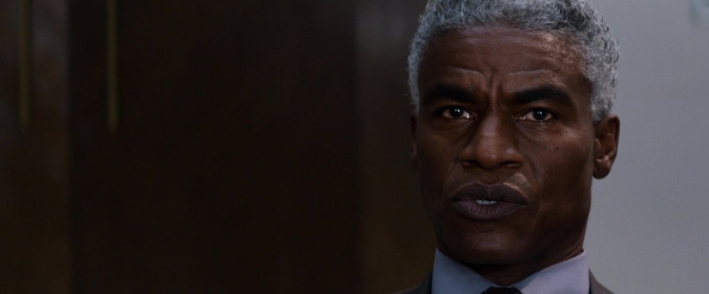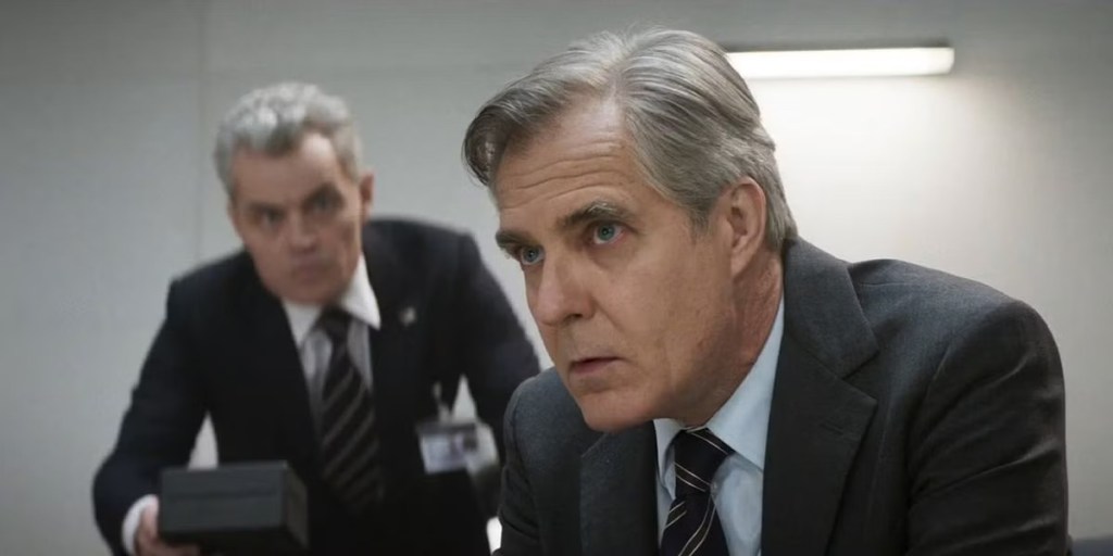 With her role demoted to the background, we were still treated to the introduction of key members of her administration. These include the Director of National Intelligence, Denlinger (Cary Elwes), the only one named in the film, with the others identified in the credits solely by their positions. They were NRO (Charles Parnell), JSOC (Rob Delaney), DIA (Indira Varma), and NSA (Mark Gatiss). Their presence in the film is minimal, occurring during an intelligence community briefing in Washington, D.C., regarding the Entity, which Ethan infiltrates despite the highly secure apparatus surrounding them. As he is always doing. While the group is literally discussing how “humans’ are the weakest link of any security chain, we are treated to the arrival of a man, Eugene Kittridge’s adjutant (Marcello Walton), silent and efficient, and one hundred percent Ethan wearing one of the series trademarked masks.