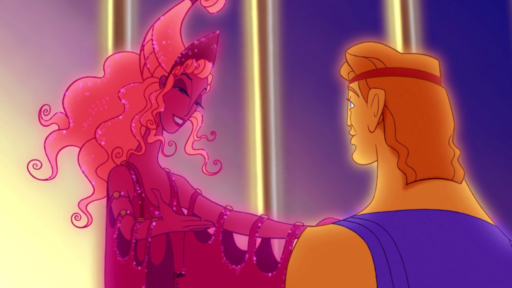 The relationship between Hercules and Megara (Susan Egan) is central to the plot. While a minion of Hades, trying to salvage what’s left of her life and soul after a deal with Hades left her with the short end of the stick, she comes to care about him truly. Before the reveal, we spend much of the time with her character in a way that serves to differentiate her from the standard love interest, a facet of 90s Disney films that has continued to the modern era. Her introduction is designed to riff off the standard ‘Damsel in Distress’ scenario, caught up in one of Hercules’ 12 Labors. Because of her past, her ability to trust and rely on Hercules is complicated – men have proven to be manipulative cowards who would abandon her at the first sign of difficulty. Hades preys on this fear of hers, granting him leverage that could hurt both of them.