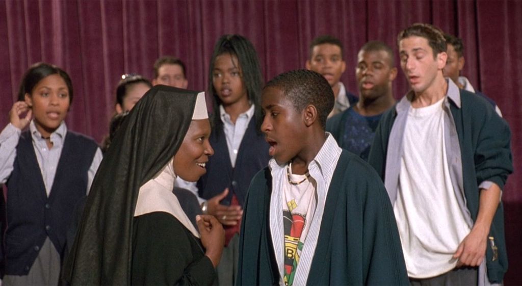 At first, the students viewed the class as an easy “A,” which is why many of them enrolled in it. Rita Watson is the most reluctant at first to undertake Sister Mary Clarence’s new direction. At the same time, the others view it as too much trouble not to go along and risk failing. The students are filled with numerous actors meant to fill out the class. Still, a handful are central to the storyline – such as Wesley Glen “Ahmal M’jomo Jamaael” James (Ryan Toby), Maria (Alann Ubach), Richard “Sketch” Pincham (Rob Johnson), Frankie (Devin Kamin), and, much like Lauryn Hill, Margaret (played by a young Jennifer Love Hewitt) in one of her breakout roles. Watching the core group grow from a ragtag bunch of misfits into a class that not only respects Sister Mary Clarence but is willing to go to bat for her when the inevitable exposure of her true identity gets out is… joyful.