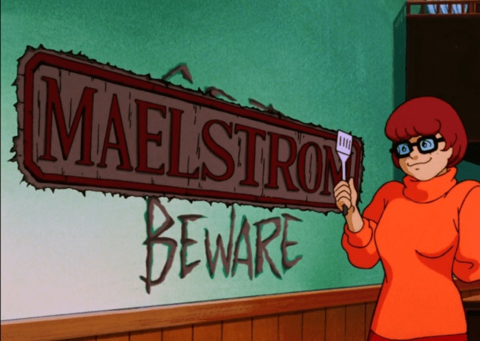 Thus, we begin the traditional aspect of all Scooby-Doo mysteries. An isolated, grand estate with a dark and troubling history, outfitted with a cast of potential suspects. The first person they meet on their way in is Jacques (Jim Cummings), the ferryman, who brings them through the waterway up to the island itself. Next, we have Snakebite Scruggs (Mark Hamill) and his boar, who has been trying to catch a catfish he’s nicknamed Big Mona for years. On the grounds itself is Beau Neville (Cam Clarke), the estate’s gardener. Finally, we have the madam herself, Simone Lenoir (Adrienne Barbeau), who owns the house and is reluctant about outsiders being anywhere near her home, especially with the curse of the island running rampant. Each character presents ample suspicious behavior, and the Mystery Gang dutifully works through figuring out who is the source of the evening’s events.