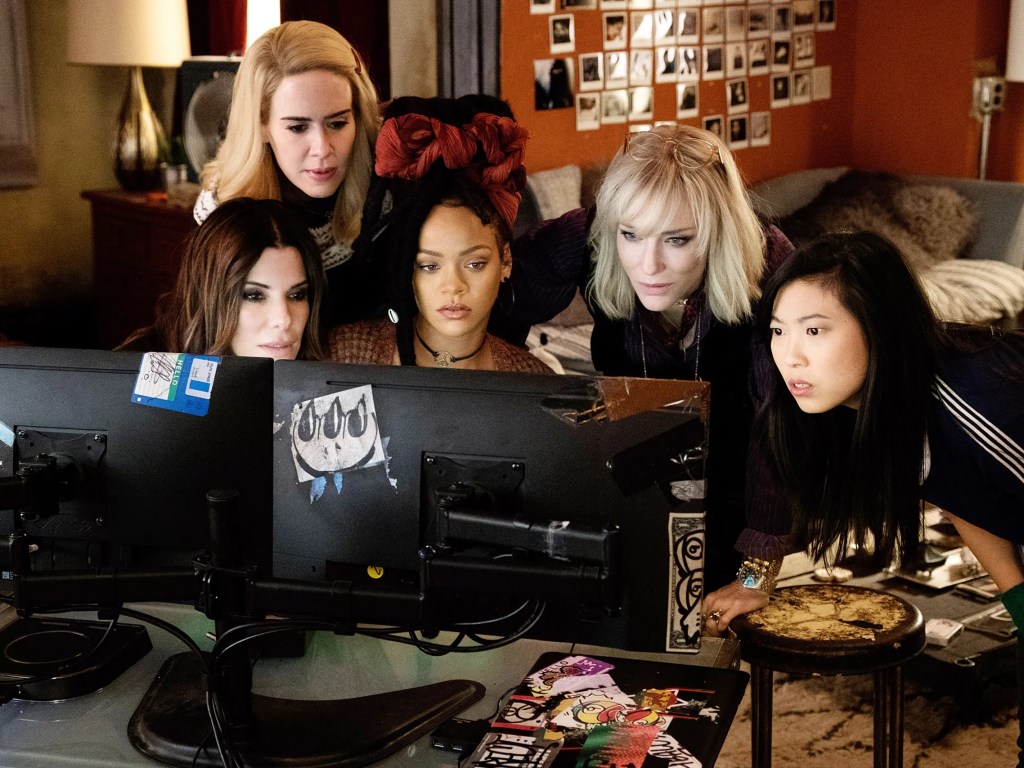 Leslie “Nina Ball” Jordan (Rihanna) is a capable hacker whose job is to infiltrate and manipulate the extensive security presence at the Met Gala. She does this by slowly maneuvering one particular camera every day to craft an innocuous blind spot in a venue that has literally every inch but the interior of the bathrooms under surveillance. Constance (Awkwafina) is herself in pickpocket form, capable of using sleight of hand to get her hands on seemingly the most difficult to steal items. Her job is simple: remove the necklace, which has a complicated lock, from the neck of their perceived target.
