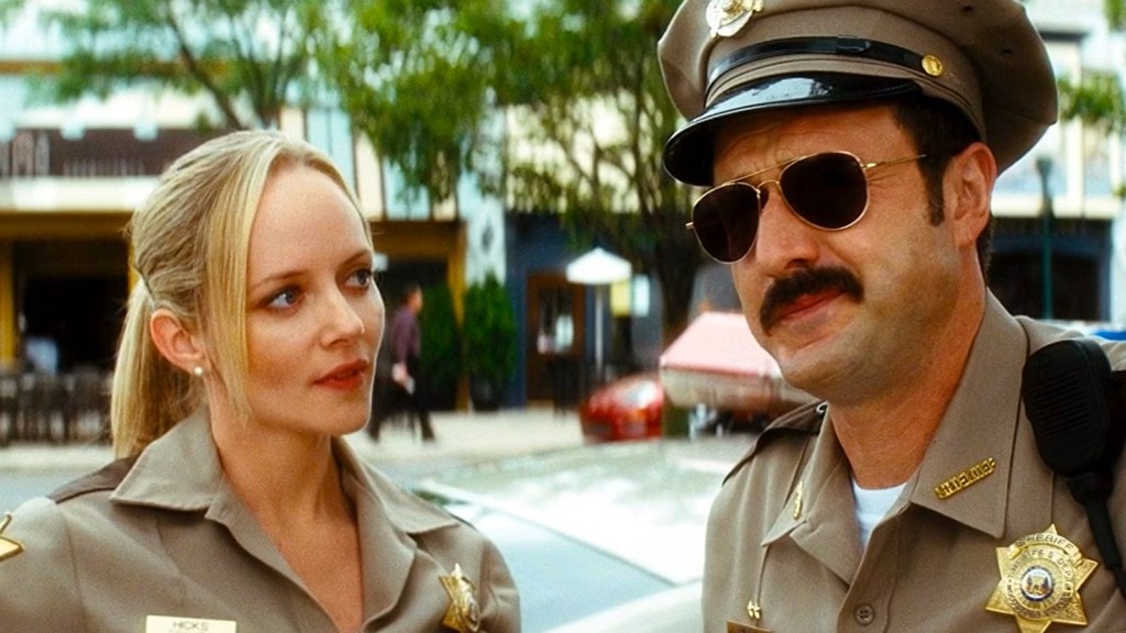 Since Scream 3’s conclusion, Dewey and Gale have married and returned to Woodsboro. In that time, he has become the sheriff of Woodsboro while she has become stricken with writer’s block. His job as sheriff also includes some of the rest of the main ensemble – his varying deputies. Anthony Anderson (Anthony Perkins), Ross Hoss (Adam Brody), and Judy Hicks (Marley Shelton) all play major supporting roles, with Judy in particular being revealed to have been in Sidney’s same year and class during the original massacre.