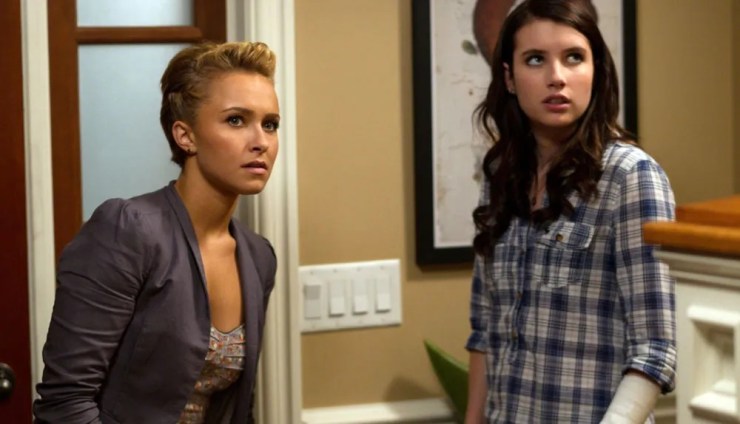 Scream 4 begins with an interesting sequence. We are first introduced to Lucy Hale and Shenae Grimes, who are revealed to be characters from the opening of Stab 6. Then the film transitions to Kristen Bell and Anna Paquin… who are swiftly revealed to be from the opening of Stab 7. It is only after this double fake-out that we meet Marnie Cooper (Britt Robertson) and Jenny Randall (Aimeé Teegarden), the true targets for the opening film. Scream 4 would be the first in the franchise to break the tradition set with Casey Becker and Steven Orth by having two women as the (real) opening kill. The tradition would continue to be played with across Scream (2022) and Scream VI, where the target of the opening attack survives, and an intended Ghostface was the victim, respectively.