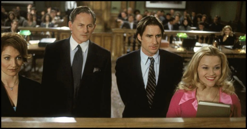 Elle truly is underestimated and overlooked by practically everybody, from her parents, played briefly by James Read and Tane McClure, to CULA’s advisor, played by Allyce Beasley. Still, there are a handful of people who are, from the moment they meet Elle, on her side. While this is not a romcom, Emmett Richmond (Luke Wilson) first meets Elle after a frustrating first day and proves to be a treasure trove of support, offering her advice on how to handle the professors that she is about to face in class without so much as a second’s hesitation. Paulette Bonafonté (Jennifer Coolidge), a manicurist whom Elle befriends and later helps, is a constant well of support throughout the film. Then, when it comes down to it, there is Brooke Taylor-Windham (Ali Larter), Callahan’s client, whose murder trial dominates the latter half of the film and is the one who trusts Elle implicitly amid the sea of suits she has hired for her defense.